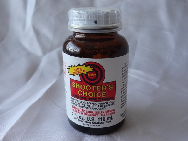 Shooter's Choice Solvent hat sich auch in der BRD bei Kennern inzwischen durchgesetzt. Es dürfte das wirksamste und am einfachsten anzuwendende Reinigungsmittel für Läufe sein, das keine Nachbehandlung erfordert. Es ist nicht bekannt, dass es die Brünierung oder das sonstige Finish der Waffe angreift. Trotzdem sollte damit, wie mit allen Chemikalien, vorsichtig umgegangen werden. Shooter's Choice löst gleichermaßen gut Rückstände in Kugel- und Schrotläufen. Sowohl Patches als auch Bürsten werden damit benetzt, um den Reinigungserfolg möglichst schnell zu erreichen.